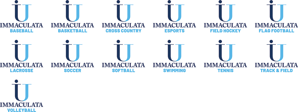 The following logos are the approved stacked lockups for each sport offered by Immaculata University. Color variations are available below and are applicable to all of these lockups. Contact University Communications and Marketing with any questions regarding sport-specific branding and usage.