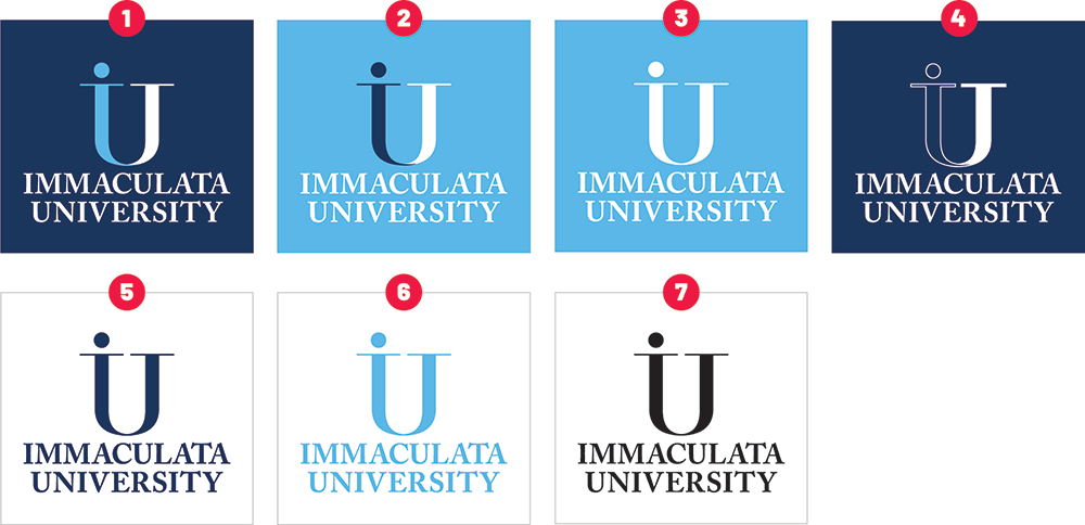 The stacked orientation (pictured right) is the preferred mark to use on all athletics communications. The Immaculata University IU logo is composed of the “IU” symbol and the words “Immaculata University.”