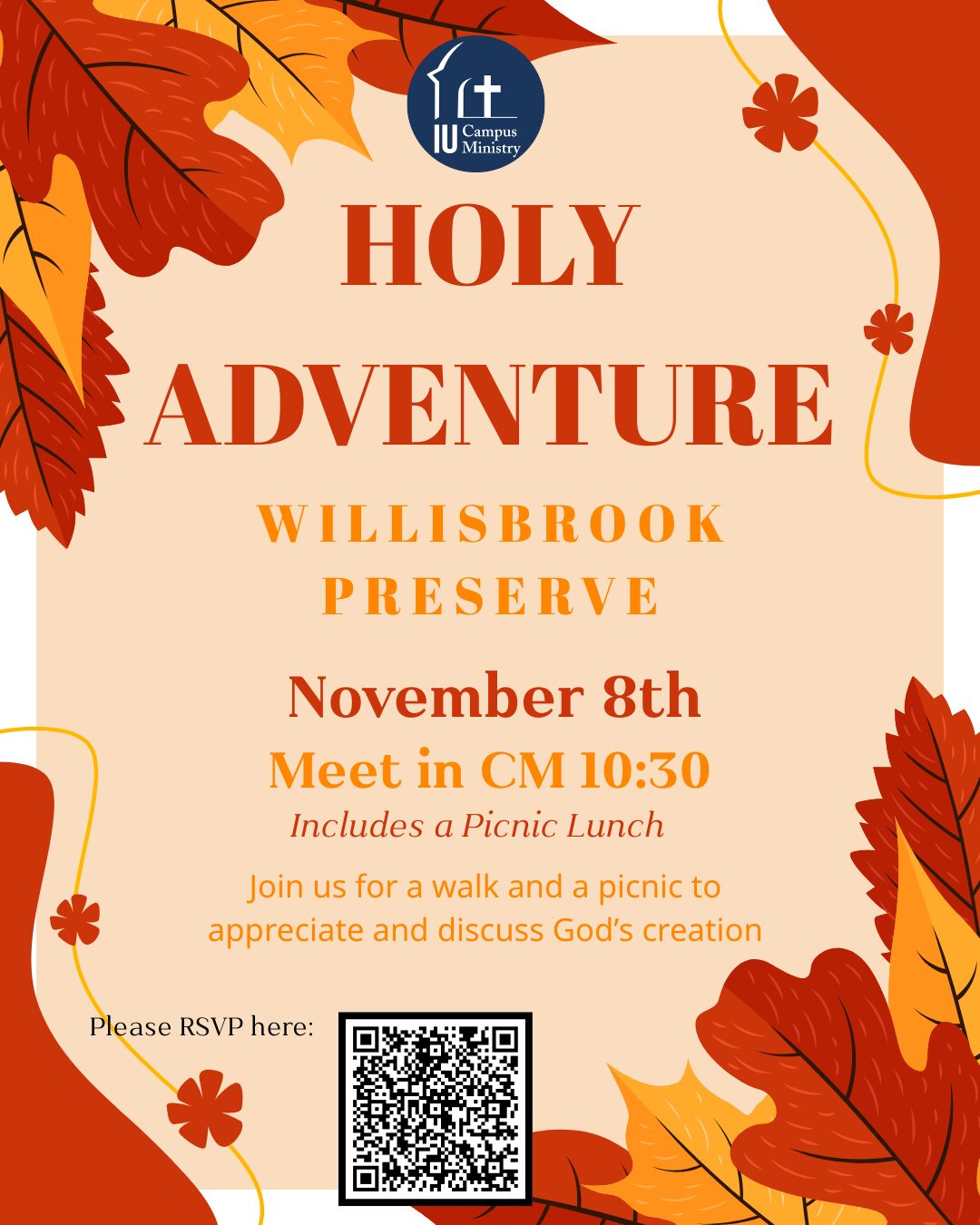 Campus MinistryJoin Campus Ministry as we appreciate God's creation while hiking through the Willlisbrook Preserve. We will hike and have a picnic lunch (lunch is provided).