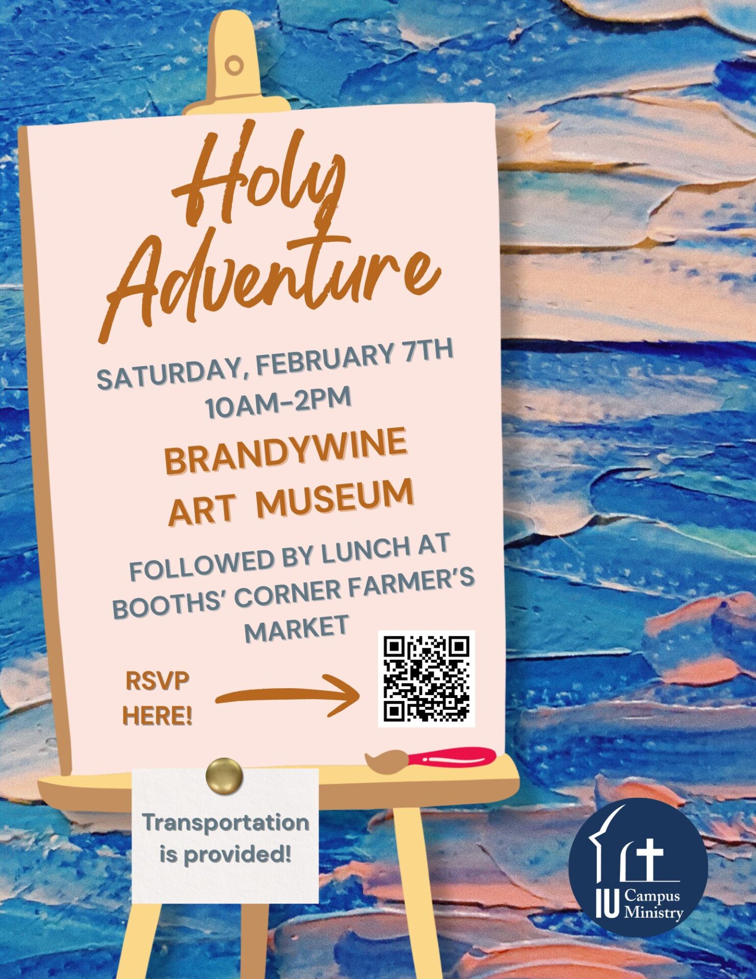 Campus MinistryJoin us to travel to the Brandywine Art Museum to admire the beauty of the artwork and discuss God's presence in art. Transportation is provided.