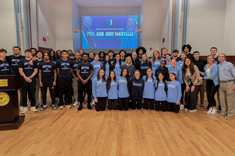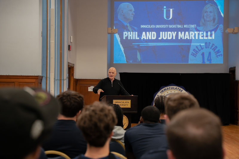 Basketball legends Phil and Judy Martelli ’75 returned to campus to speak with the men’s and women’s basketball teams about leadership and teamwork.