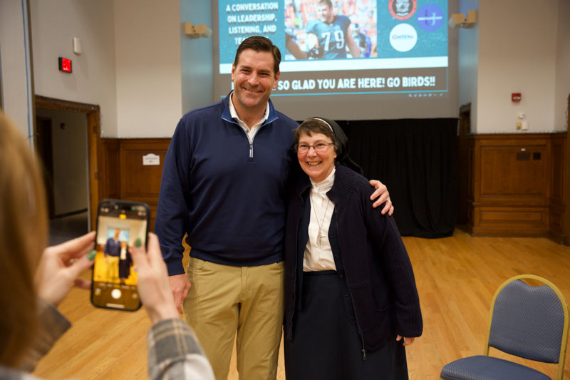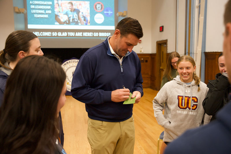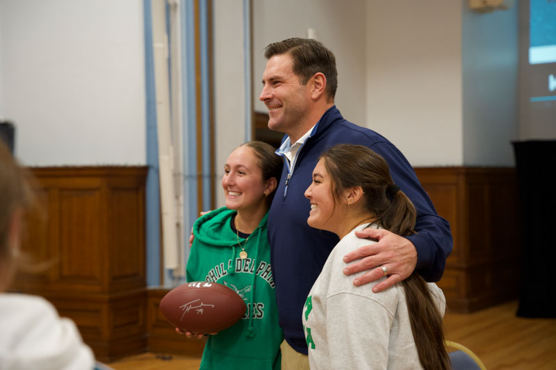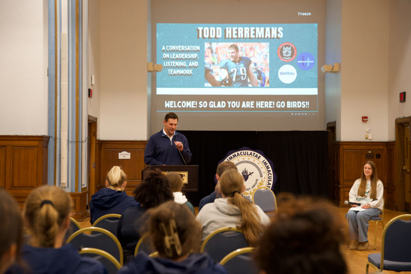Former Philadelphia Eagles offensive lineman Todd Herremans came to Immaculata to share a message on the importance of leadership, listening, and teamwork.