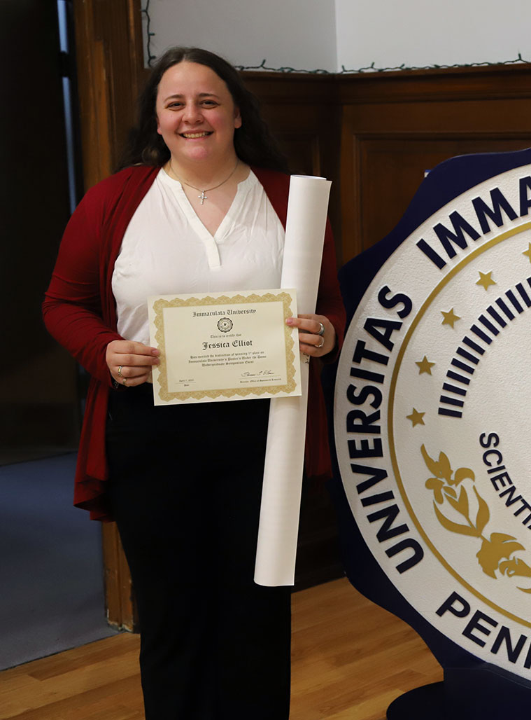 Elizabeth Miller completed the IU Honors Program and received the Sister Marian William Hoben Medal for English during the 2025 commencement ceremony.